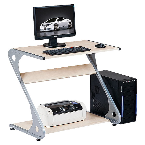 Компьютерный стол 699 выполнен из металла и светлого МДФ. Компактные размеры – 85х57х75 позволяют удобно установить стол в небольшой комнате или офисе. Кроме того, легкость конструкции обеспечивает легкую транспортировку стола и сборку конструкции на месте. Вы можете легко передвигать компьютерный стол в пределах комнаты, не прибегая к помощи посторонних людей.